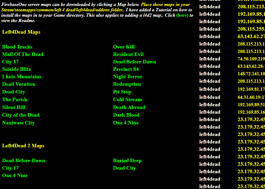 Team - 104.37.168.91:27015 thru 27024 - Also 104.37.168.92:2015 L4d2, these are down for maintenance:steamthumbsup: